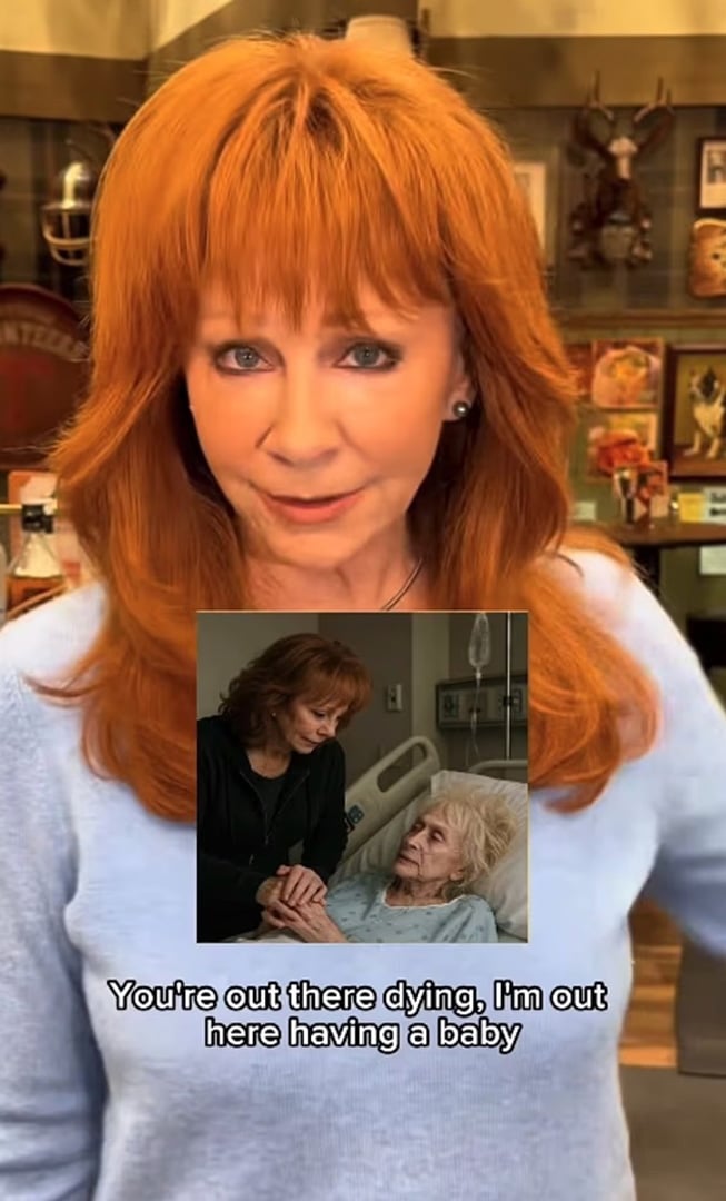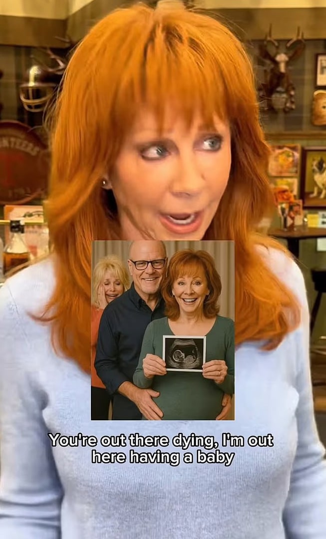 After days of wild internet rumors and fake photos showing Dolly Parton on her supposed deathbed with Reba by her side, and another picture claiming Reba was pregnant, the “Fancy” singer decided she had enough. So, in true Reba fashion, she handled the situation with humor, grace, and a line that instantly went viral.